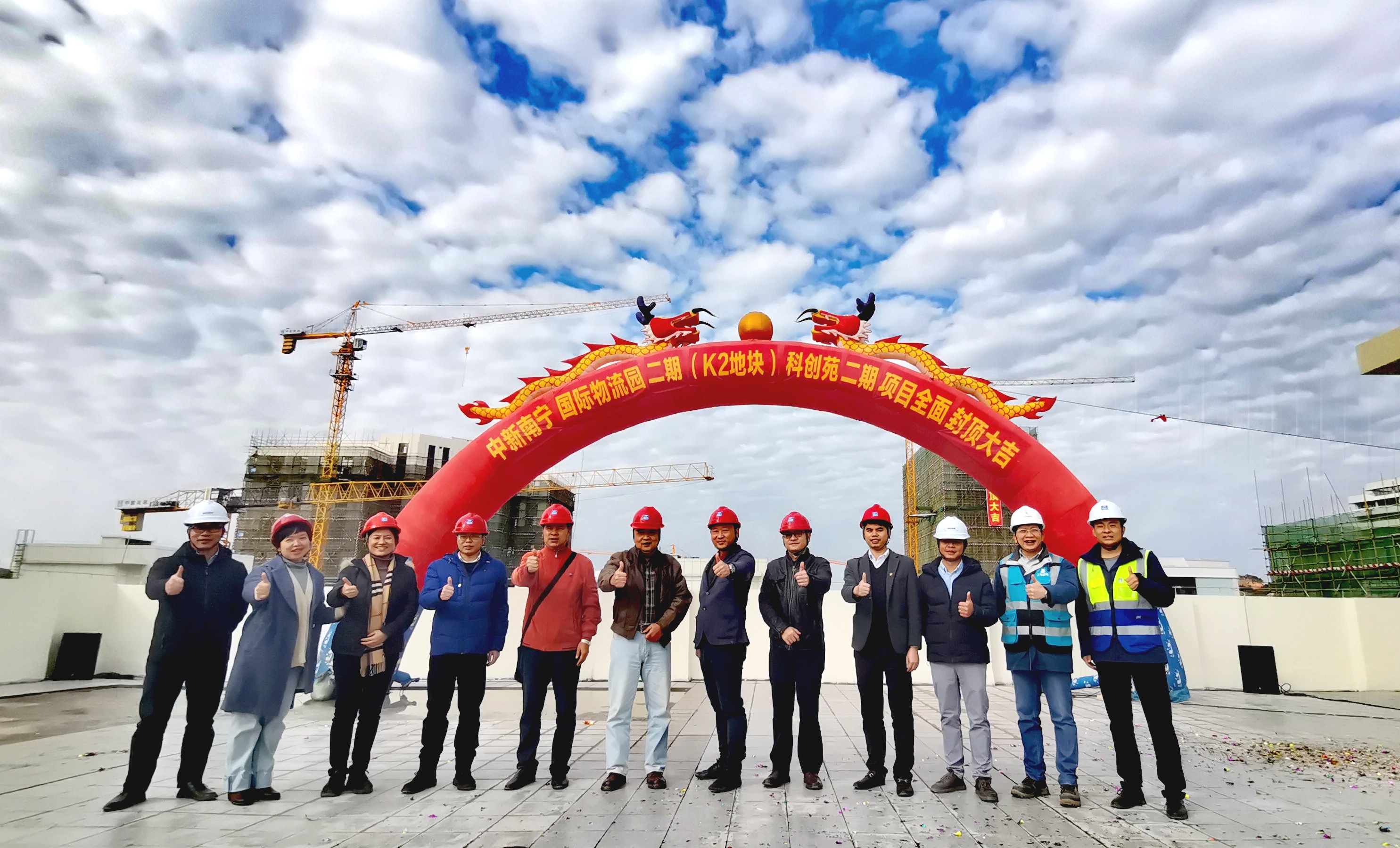 封頂大吉!中新南寧國際物流園二期K2地塊施工邁進新階段