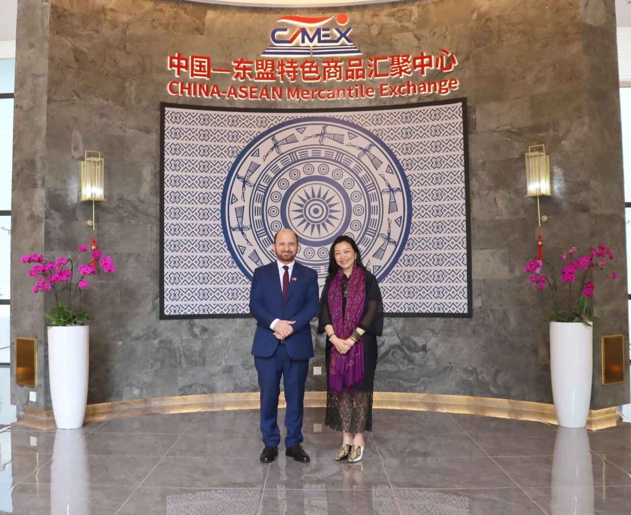 趙海燕董事長與薩達(dá)爾· 穆罕默德代理總領(lǐng)事在匯聚中心合影
