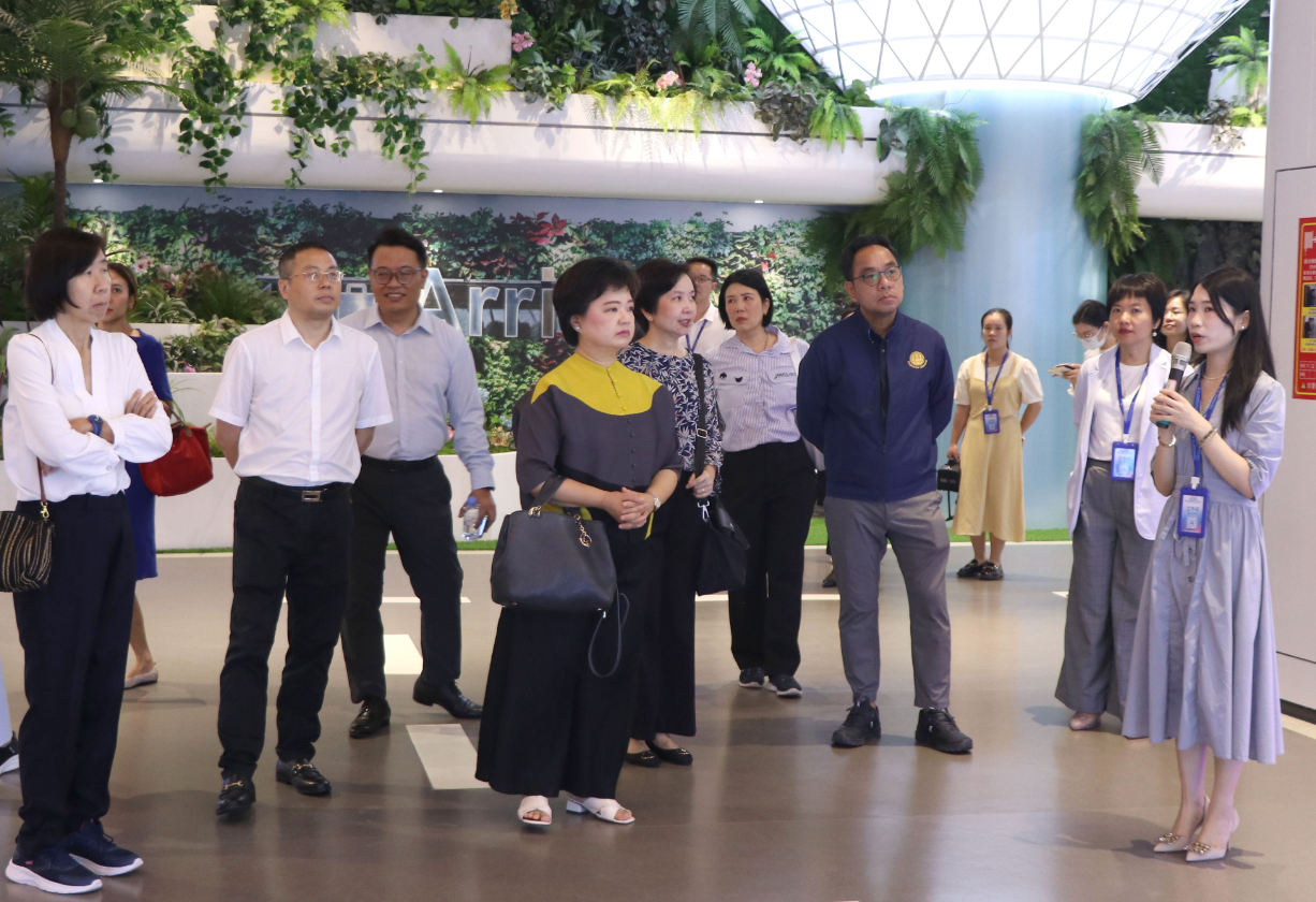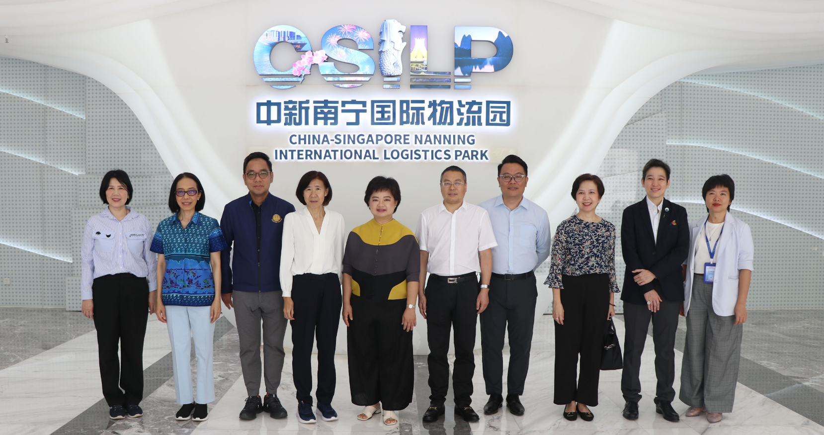 2023年6月30日,泰國商業(yè)部巡視組組長(副司級(jí))素南塔.剛婉古吉女士一行到中新南寧國際物流園(以下簡稱“中新物流園”)、中國—東盟特色商品匯聚中心(以下簡稱“匯聚中心”)考察,就進(jìn)一步提升中泰兩國在經(jīng)貿(mào)領(lǐng)域的合作與交流展開探討。廣西新中產(chǎn)業(yè)投資有限公司副總經(jīng)理商紅熱情接待了巡視組一行。