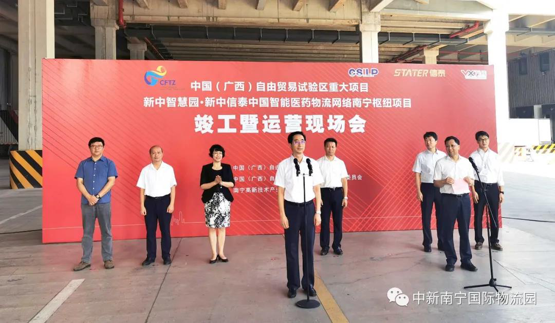 此次現(xiàn)場會,由南寧五象新區(qū)管委會副主任譚玫瑰主持,廣西新中產(chǎn)業(yè)投資有限公司總經(jīng)理鄭權(quán)介紹項目情況,自治區(qū)人大常委會副主任、黨組副書記,廣西自貿(mào)試驗區(qū)建設(shè)指揮部指揮長張曉欽宣布“新中信泰中國智能醫(yī)藥物流網(wǎng)絡(luò)南寧樞紐項目和新中智慧園竣工暨正式運營。”