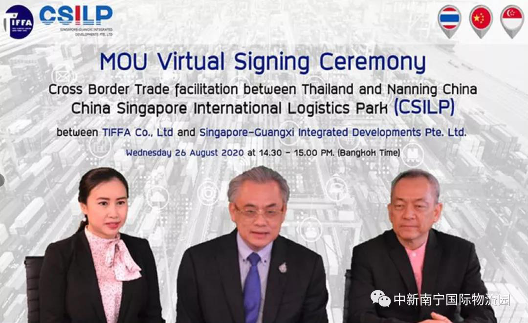 2020年8月26日,廣西新中產(chǎn)業(yè)投資有限公司董事長張松聲與泰國國際貨運代理協(xié)會有限公司(TIFFA Co.,LTD,以下簡稱TIFFA)主席Suwit Ratanachinda正式簽訂雙方合作諒解備忘錄(MOU),因疫情影響簽訂儀式以線上云簽約的方式進(jìn)行。