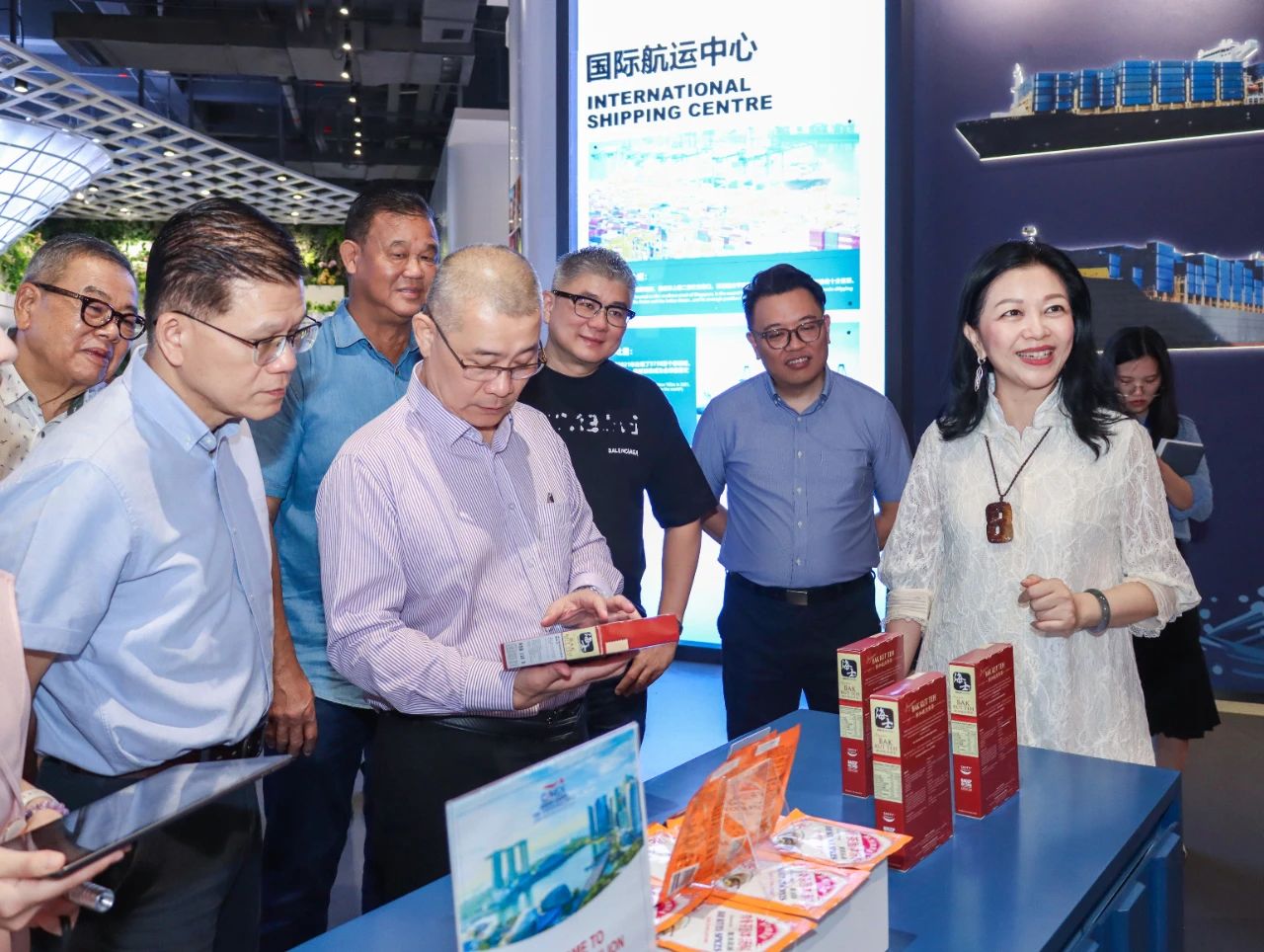 廣西新中產(chǎn)業(yè)投資有限公司、中國—東盟特色商品匯聚中心董事長趙海燕熱情接待了考察團(tuán)。在匯聚中心,考察團(tuán)認(rèn)真了解了項(xiàng)目的運(yùn)營理念。其中,各主題展館以各國代表建筑及人文風(fēng)俗元素穿插展示當(dāng)?shù)靥厣唐返淖龇钊硕恳恍隆K麄儽硎?,近兩年從多方渠道頻頻聽聞匯聚中心,如今置身現(xiàn)場更覺震撼,尤其是線上數(shù)字化平臺+線下展館沉浸式商貿(mào)體驗(yàn)相結(jié)合的方式非常新穎。