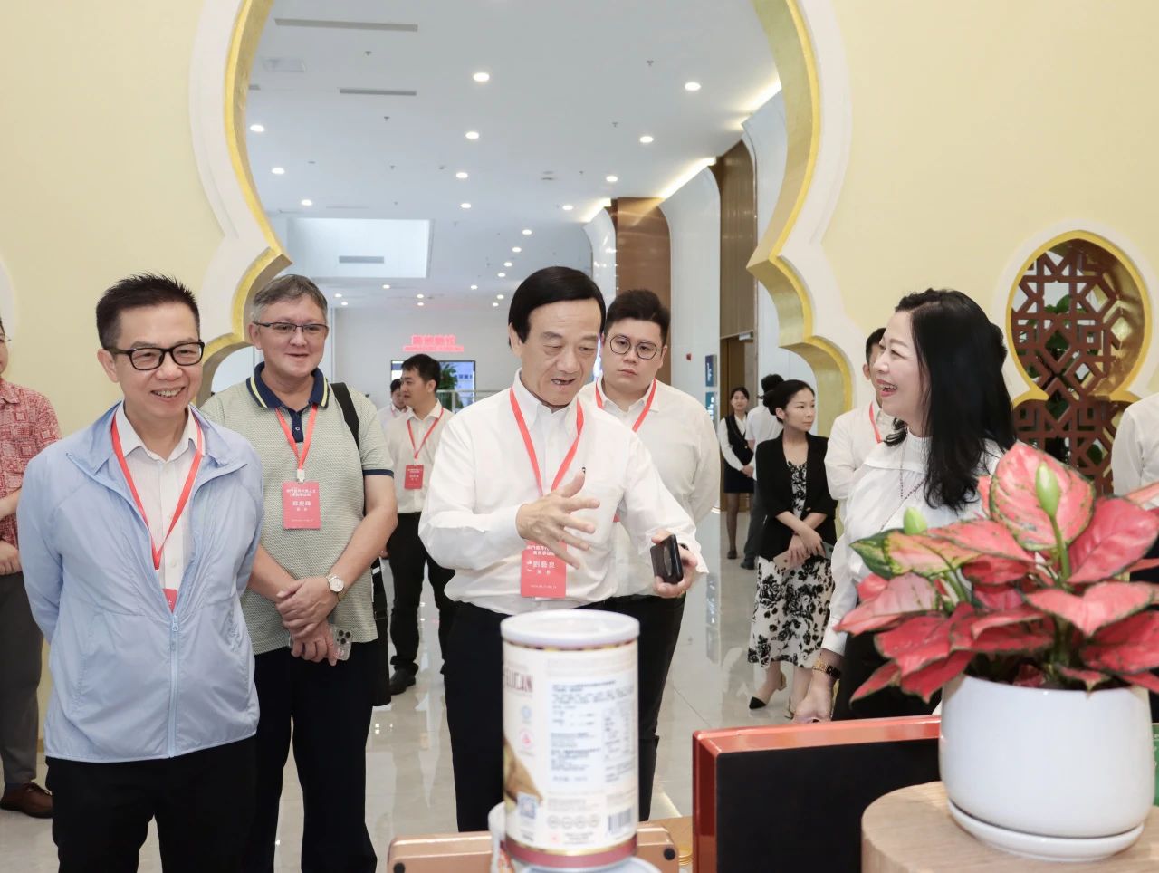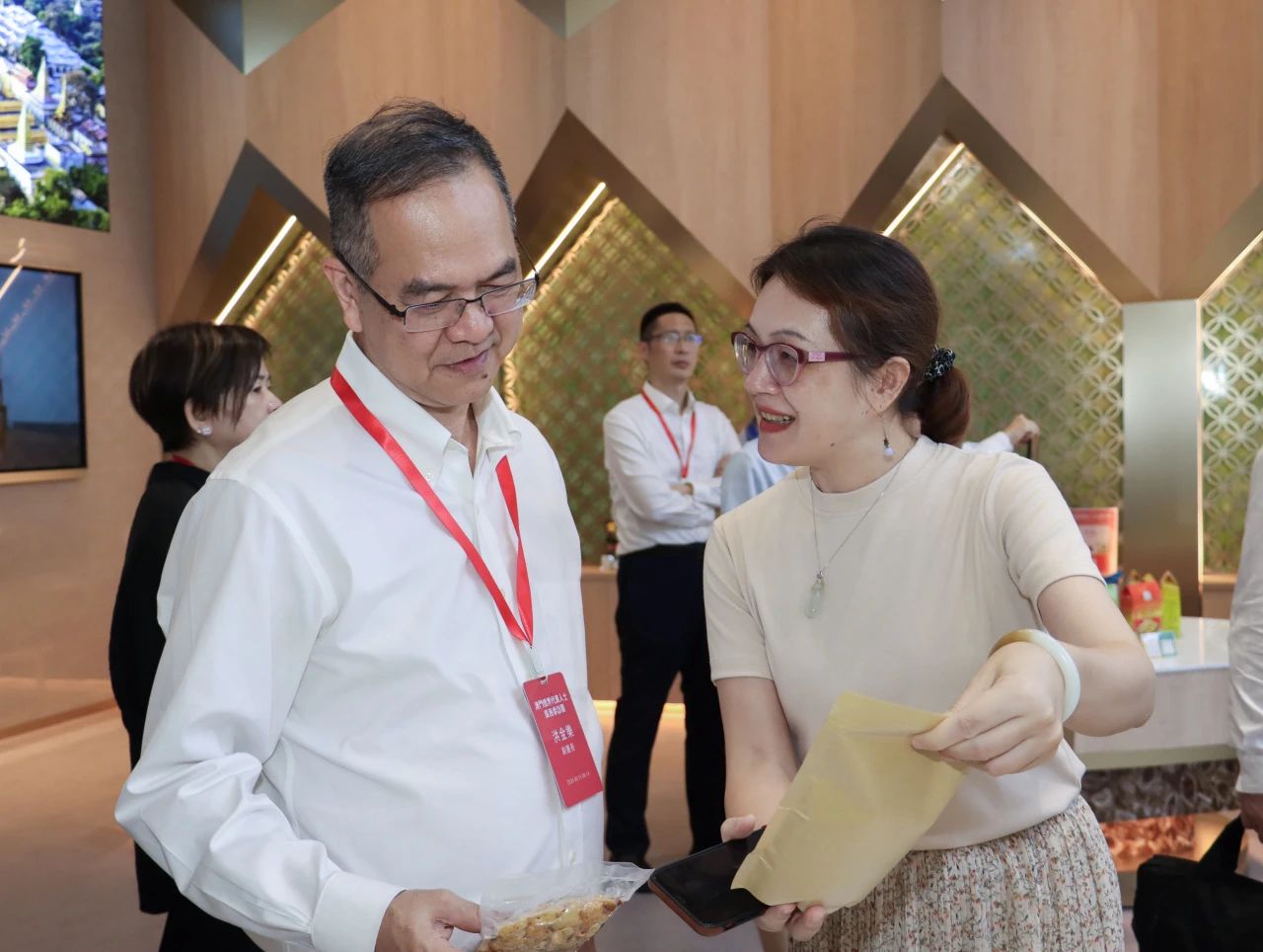 在匯聚中心,參訪團從東盟國家主題館參觀到RCEP其他區(qū)域國家主題館,一路興致盎然,熱情咨詢項目的相關(guān)信息并不斷合影留念。他們紛紛表示,匯聚中心各館融合了各國當?shù)靥厣ㄖ懊袼罪L(fēng)情元素,巧妙將各國特色產(chǎn)品進行突出展示與銷售,這樣的方式十分特別,對商家與消費者來說是一種創(chuàng)新的體驗。其中,來自澳門各東盟國家商會的會長們,對各自國家的主題展館尤其感興趣,當即就商品入駐流程及具體事宜與匯聚中心團隊進行詳細對接,現(xiàn)場氣氛熱烈!