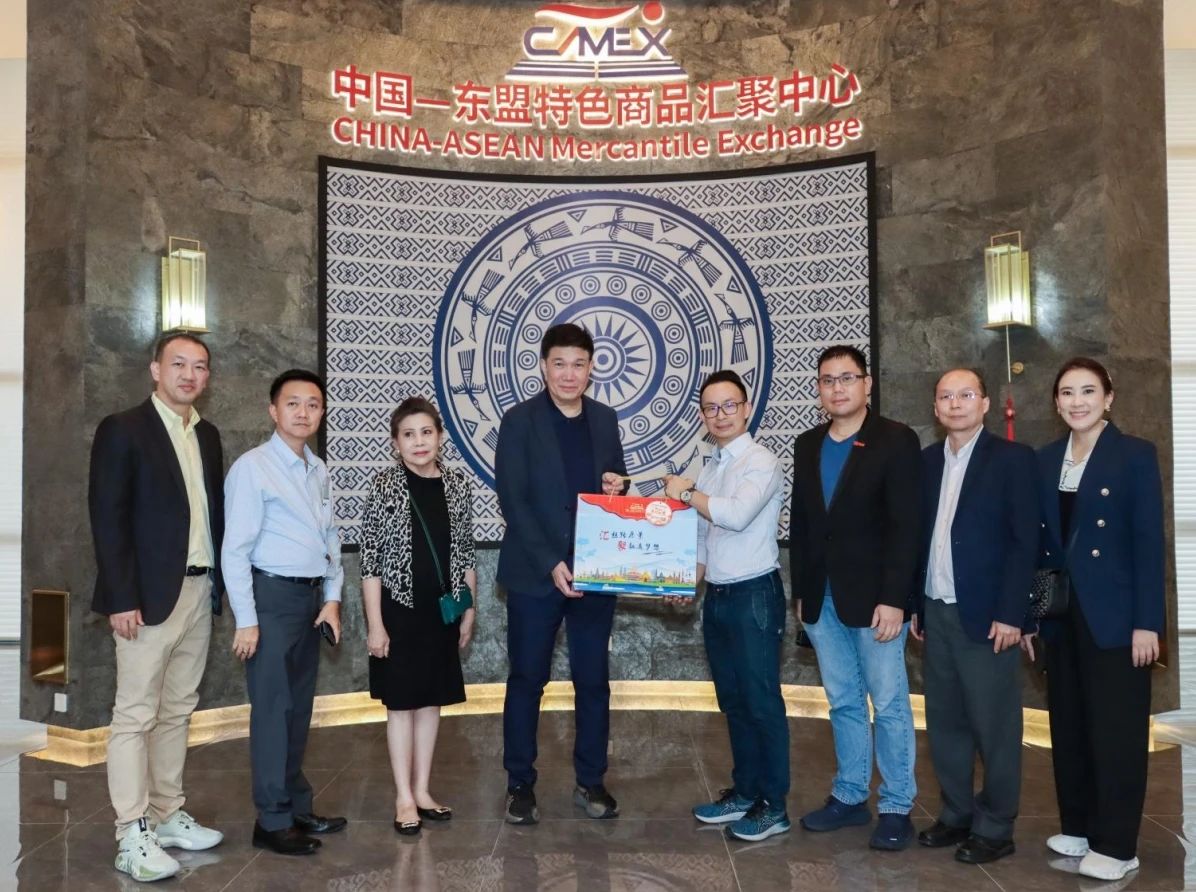 2024年6月6日,泰國(guó)工業(yè)聯(lián)合會(huì)副主席維迪·左瓦塔那率由泰國(guó)地方政府部門、商協(xié)會(huì)及企業(yè)家組成的考察團(tuán)到中國(guó)—東盟特色商品匯聚中心(簡(jiǎn)稱“匯聚中心”)參觀交流。中國(guó)—東盟特色商品匯聚中心總經(jīng)理林哲宇熱情接待了考察團(tuán)一行。