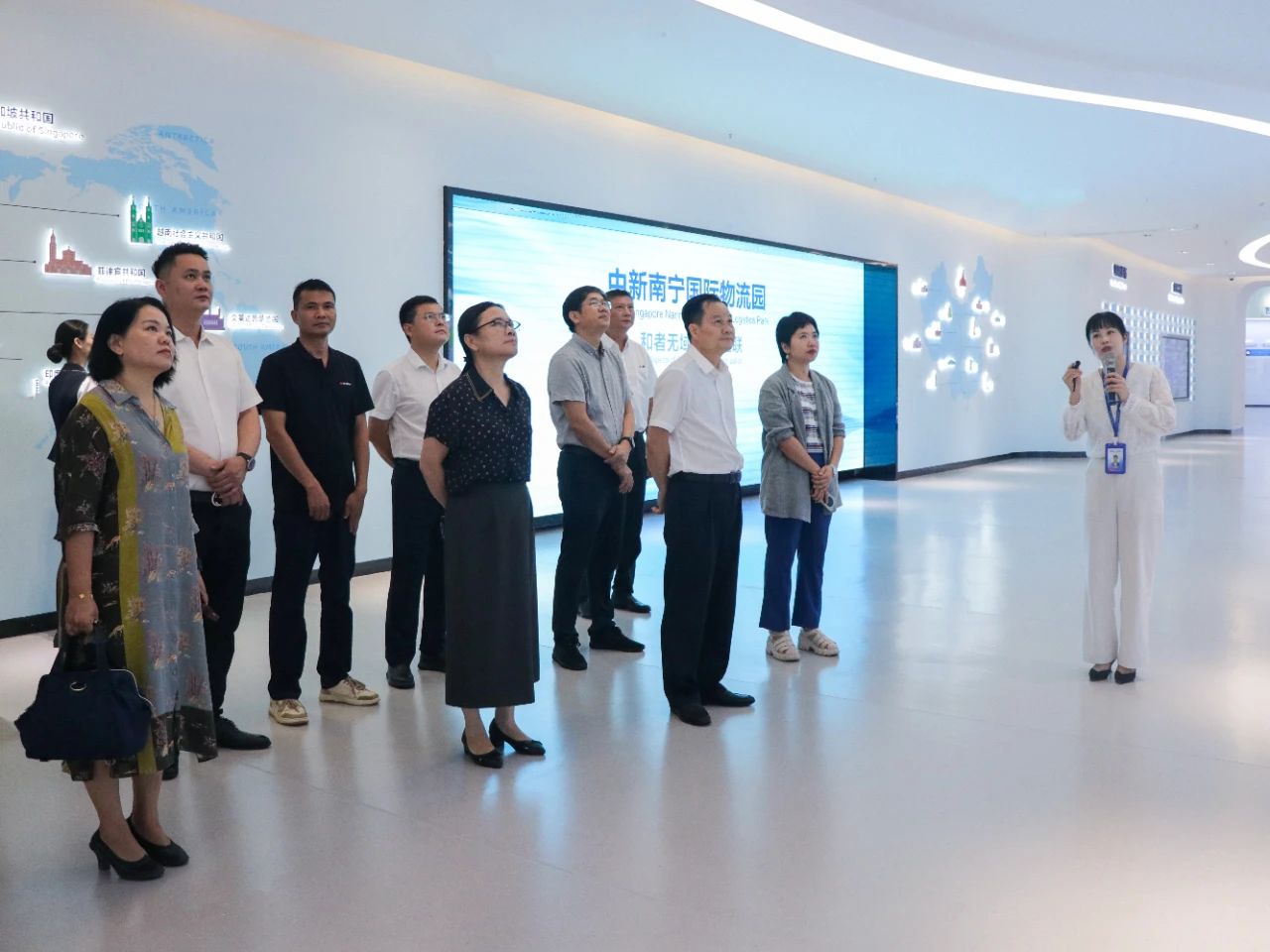 在中新物流園展示中心,調(diào)研組深入了解項(xiàng)目的整體建設(shè)和運(yùn)營(yíng)情況。目前,園區(qū)已引進(jìn)超30家世界500強(qiáng)和中國(guó)100強(qiáng)龍頭企業(yè)進(jìn)行合作后,調(diào)研組認(rèn)為:中新物流園短時(shí)間內(nèi)便發(fā)展成如此規(guī)模,實(shí)屬難得,充分體現(xiàn)了園區(qū)在高水平共建國(guó)際陸海貿(mào)易新通道及“一帶一路”建設(shè)中起到的作用。