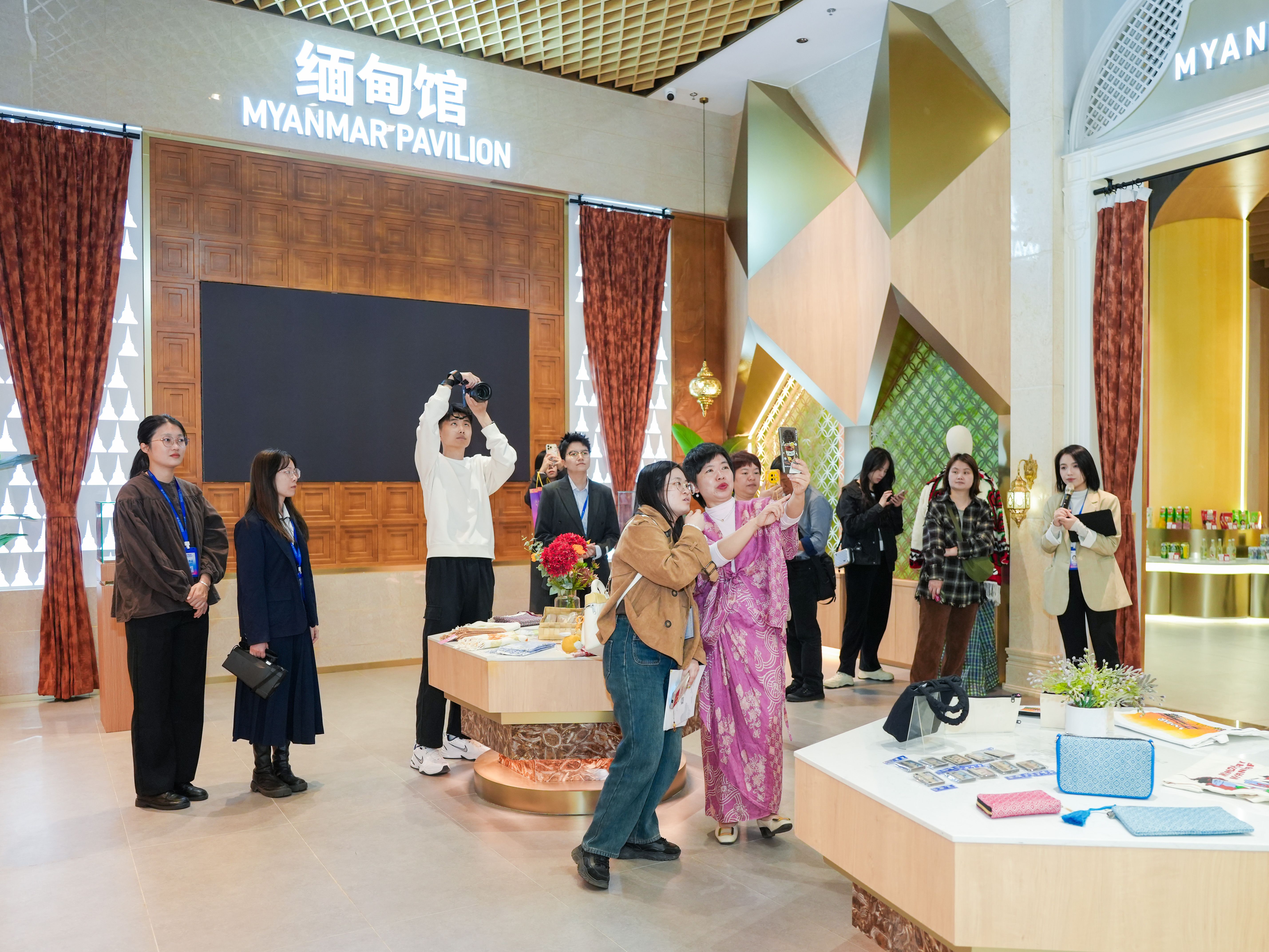 漫步匯聚中心,濃郁的東盟風(fēng)情迎面而來。印度尼西亞館的“巴厘島”風(fēng)情、新加坡館的“花園城市”設(shè)計......精心打造的17個主題展館,其匠心獨(dú)運(yùn)的文化元素和特色商品讓采訪團(tuán)眼前一亮。記者們或駐足欣賞,或交流討論,或舉起相機(jī)記錄精彩瞬間,沉浸式感受著東盟各國的獨(dú)特魅力。
