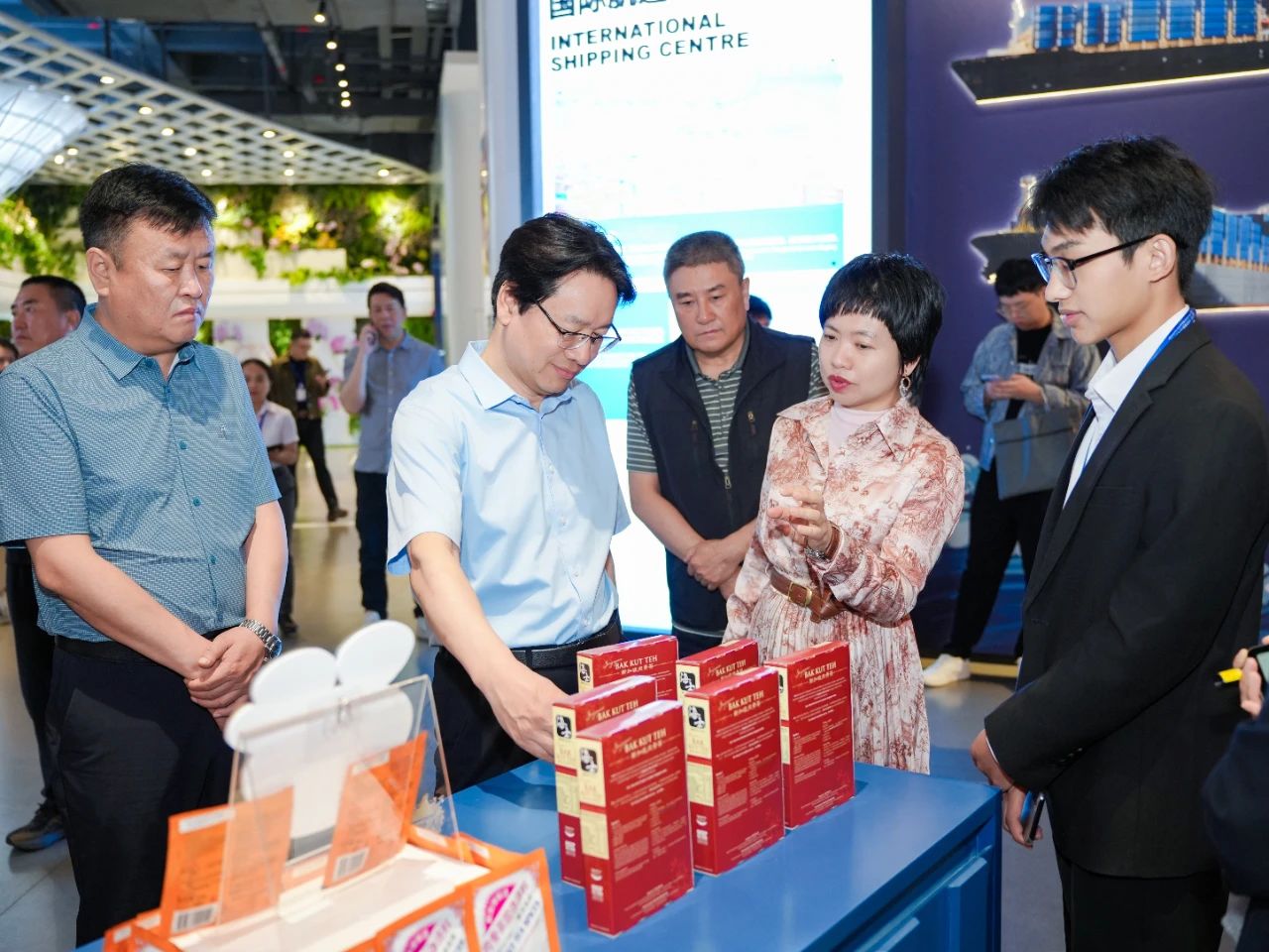 在匯聚中心,調(diào)研組深入了解項(xiàng)目創(chuàng)新發(fā)展理念與運(yùn)營模式,就商品的入駐流程、銷售模式等問題進(jìn)行了交流。調(diào)研組充分肯定了匯聚中心所呈現(xiàn)的蓬勃商貿(mào)活力及創(chuàng)新成果,并表示項(xiàng)目通過線上數(shù)字化平臺(tái)+線下展館沉浸式商貿(mào)體驗(yàn)相結(jié)合的新穎模式,為中國與東盟國家的企業(yè)搭建了雙向賦能平臺(tái),能有效提升雙方的貿(mào)易便利化水平。