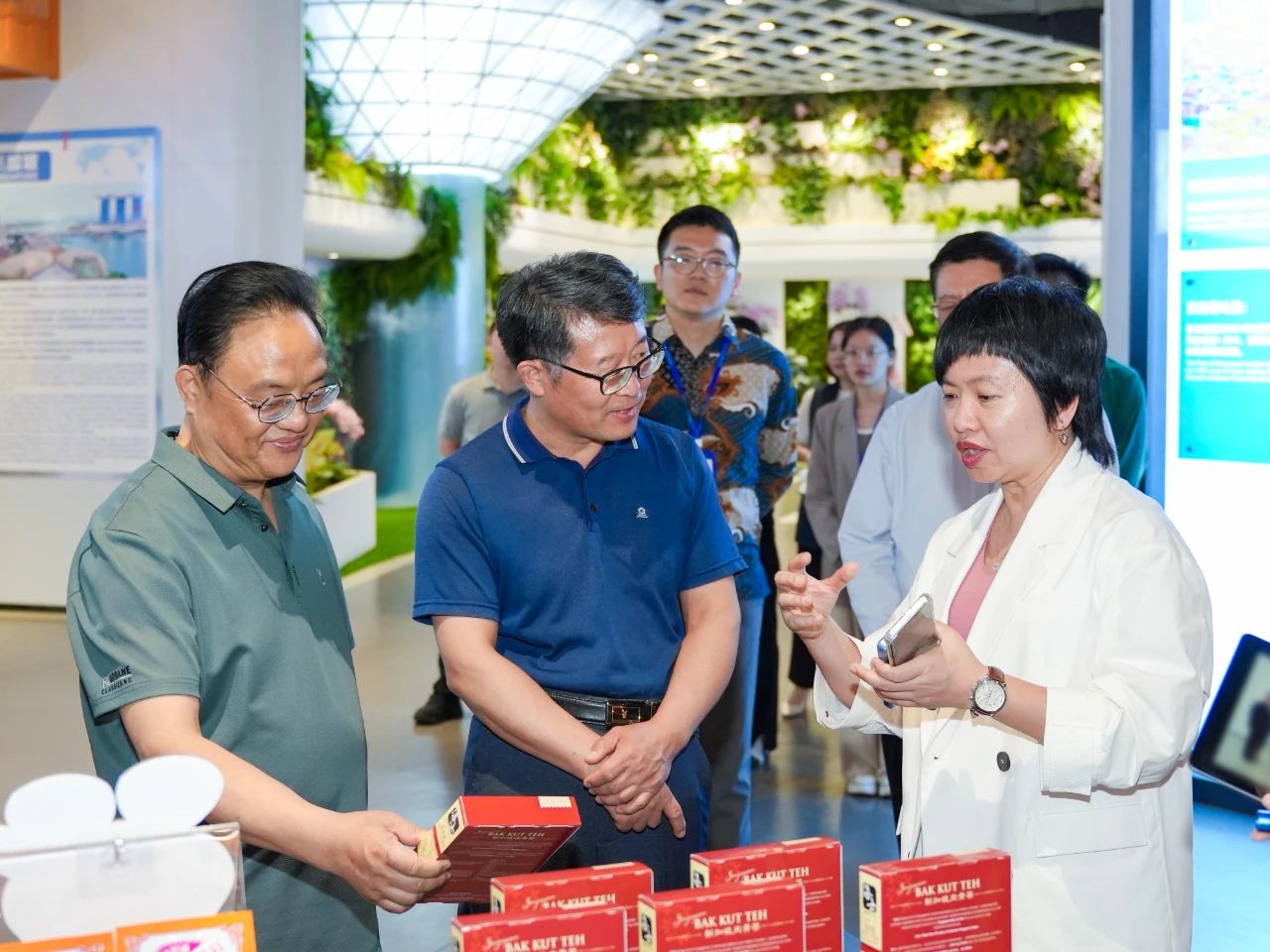 調(diào)研組剛踏入?yún)R聚中心主題展館,東盟經(jīng)典人文風(fēng)俗元素和琳瑯滿目的特色商品便躍然眼前。在深入了解匯聚中心如何通過(guò)線上數(shù)字化平臺(tái)+線下展館沉浸式商貿(mào)體驗(yàn)相結(jié)合的方式,以“物”引“流”、以“物”促“流”,幫助商家實(shí)現(xiàn)更好發(fā)展的創(chuàng)新做法后,調(diào)研組表示,匯聚中心獨(dú)特的場(chǎng)景化商品展示方式,不僅讓商品展銷實(shí)現(xiàn)了常態(tài)化,更讓每一位到訪者深刻感受到中國(guó)與東盟國(guó)家之間深厚的文化紐帶與經(jīng)貿(mào)合作的廣闊前景。