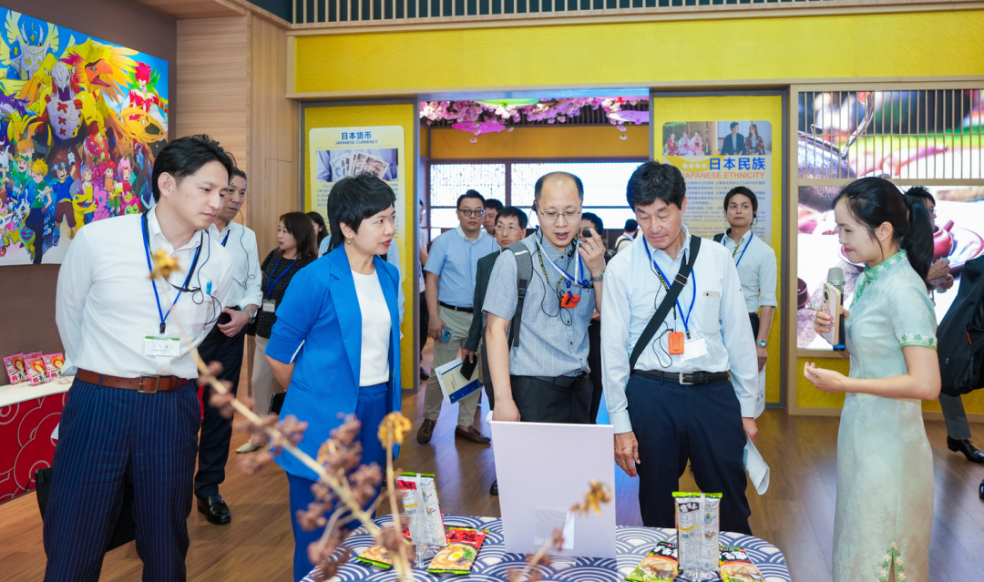 來到日本館,濃郁的日式風(fēng)情瞬間吸引了訪華團的注意。作為匯聚中心的特色主題館之一,日本館以"春夏秋冬"為設(shè)計主線,讓訪客在有限的空間內(nèi)沉浸式感受日本文化的獨特魅力。大家相繼用鏡頭記錄下獨具特色的場景布置,并對館內(nèi)陳列的各類特色商品表現(xiàn)出極大興趣,不時駐足了解相關(guān)內(nèi)容。