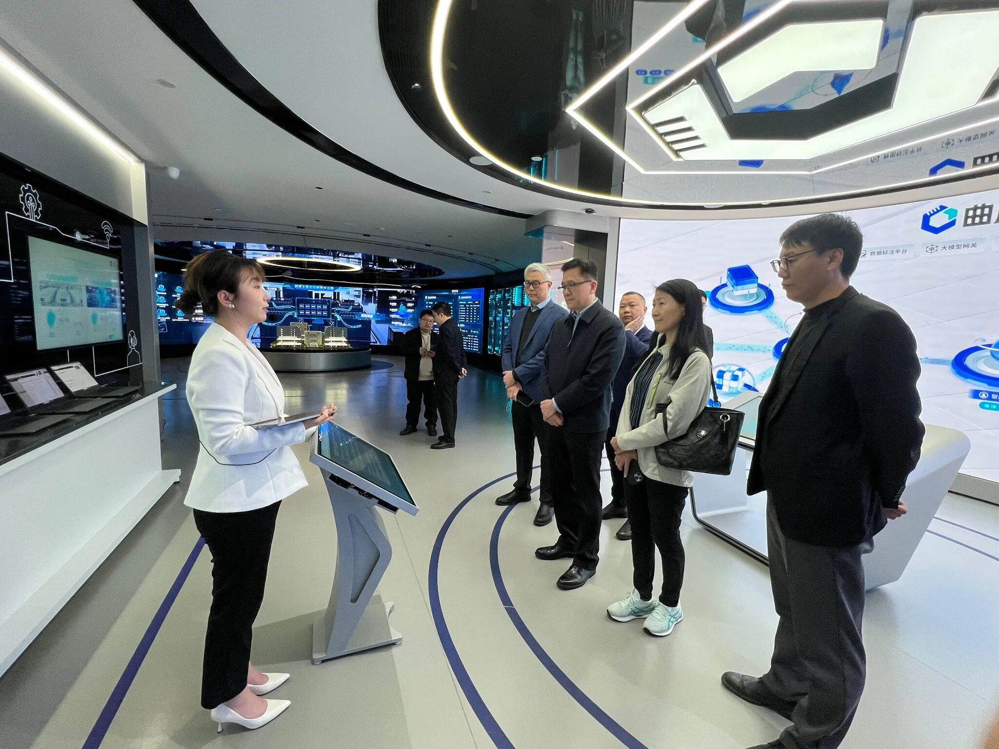 創(chuàng)新科技及工業(yè)局局長孫東教授(左二)在廣西到訪中國—東盟地理信息小鎮(zhèn)。