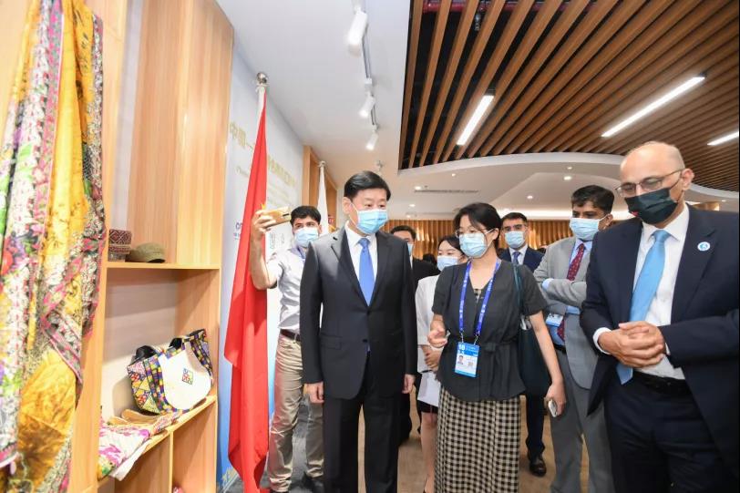 揭牌儀式結(jié)束后,王小東、莫因·哈克等還參觀了巴基斯坦商品展示區(qū)。此次入駐中國—東盟特色商品匯聚中心,巴基斯坦重點展出紡織品、食品、木制品以及外科手術(shù)產(chǎn)品和運動產(chǎn)品等主要出口產(chǎn)品。