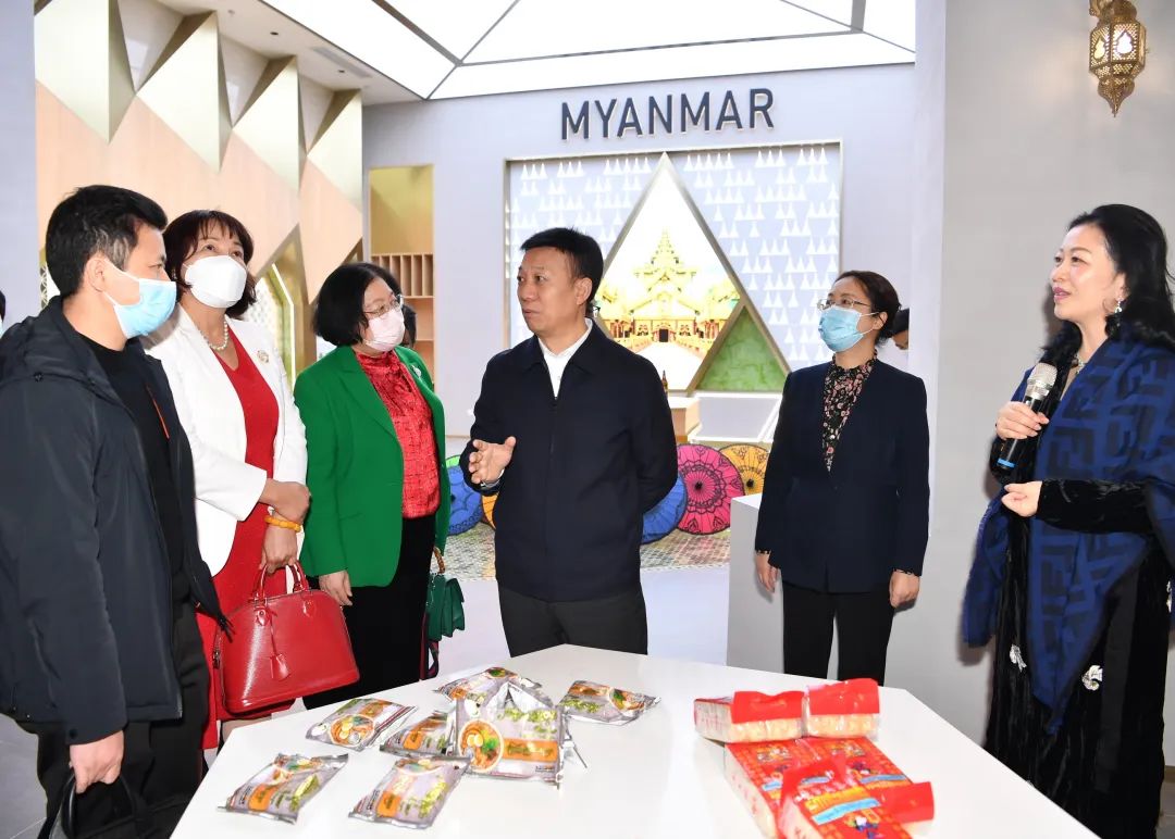 在參觀廣西館的過程中,調(diào)研組一行對展現(xiàn)壯鄉(xiāng)風(fēng)情與各類特色“桂品”表現(xiàn)出了濃厚的興趣。蔣連生書記指出梧州的六堡茶、冰泉豆?jié){和龜苓膏合稱“梧州三寶”,深受亞洲特別是東南亞各國人民的喜歡,其中六堡茶是著名的“僑銷茶”,最大的出口市場正是東盟地區(qū),希望梧州的企業(yè)能充分借助匯聚中心這一重要平臺將國際市場做大做強(qiáng)。