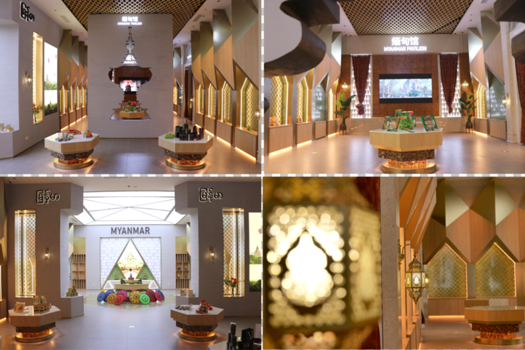 2021年,中新南寧國(guó)際物流園聯(lián)合中國(guó)—東盟博覽會(huì)秘書(shū)處共同打造了獨(dú)具特色的中國(guó)—東盟特色商品匯聚中心(以下簡(jiǎn)稱(chēng)“匯聚中心”)。其中,匯聚中心精心設(shè)計(jì)的緬甸館,以緬甸傳統(tǒng)特色文化為基調(diào),通過(guò)提取緬甸經(jīng)典的佛塔造型、翡翠色調(diào)、寶石切割面、漆器形狀等元素,結(jié)合緬甸風(fēng)土人情,巧妙融合到設(shè)計(jì)之中,向公眾呈現(xiàn)一個(gè)“金色緬甸”的效果。自匯聚中心于2022年9月14日正式啟動(dòng)以來(lái),緬甸駐南寧總領(lǐng)事館總領(lǐng)事覺(jué)梭登就數(shù)次到訪匯聚中心,尤其對(duì)緬甸館能夠在有限的空間里充分展示緬甸多元文化與特色產(chǎn)品的設(shè)計(jì)理念感到極其認(rèn)同。
