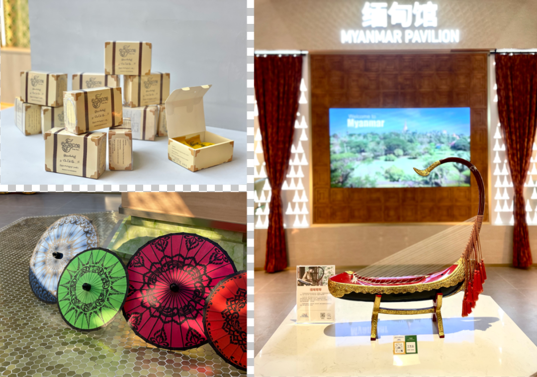 在緬甸館,覺(jué)梭登總領(lǐng)事親自就展館陳列的特色產(chǎn)品及傳統(tǒng)手工藝品進(jìn)行了詳細(xì)地介紹。他表示,緬甸有很多特色產(chǎn)品,比如木雕及珠寶、玉石、勃生傘、草帽、籃筐、席子、茶葉、醬料、香米、啤酒等,深受大眾喜愛(ài),尤其是緬甸蒲甘的漆器。漆器制作過(guò)程中所用到的漆料和其他顏料都是純天然的,非常環(huán)保。作為緬甸人民生活中不可或缺的工藝品,漆器因其精美的外形、做工考究、實(shí)用的功能得到世界各國(guó)旅游者的青睞。他認(rèn)為,匯聚中心緬甸館無(wú)論是在設(shè)計(jì)上還是產(chǎn)品陳列上,都能讓大眾對(duì)緬甸有更深刻的認(rèn)識(shí),滿足人們對(duì)緬甸的探索之心??傤I(lǐng)事的精彩介紹讓大家對(duì)緬甸文化有了進(jìn)一步的了解,同時(shí)也吸引了其他到館嘉賓的駐足聆聽(tīng)。