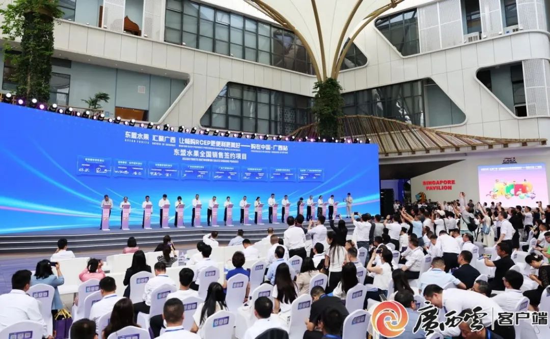 陳剛表示,廣西是中國(guó)面向東盟開(kāi)放合作的前沿和窗口,也是全國(guó)水果產(chǎn)量第一的省區(qū)和東盟水果進(jìn)入中國(guó)的“門戶樞紐”,號(hào)稱全國(guó)的“果盤子”。舉辦此次活動(dòng),是落實(shí)習(xí)近平主席今年4月對(duì)有關(guān)東盟國(guó)家進(jìn)行國(guó)事訪問(wèn)成果,發(fā)揮廣西作為東盟水果及RCEP優(yōu)品進(jìn)入中國(guó)市場(chǎng)的首站及樞紐作用,推動(dòng)實(shí)現(xiàn)“東盟出產(chǎn)—廣西集散—中國(guó)暢銷”,助力深化拓展文旅推介、跨境電商等領(lǐng)域合作,加快區(qū)域經(jīng)濟(jì)一體化,服務(wù)構(gòu)建更為緊密的中國(guó)—東盟命運(yùn)共同體。廣西期盼與各方攜手,深化與東盟各國(guó)的水果經(jīng)貿(mào)合作,推進(jìn)基礎(chǔ)設(shè)施互聯(lián)互通,打造高效便利的進(jìn)出口通關(guān)服務(wù)體系,共同開(kāi)拓中國(guó)—東盟水果貿(mào)易市場(chǎng)空間;深化人工智能、數(shù)字經(jīng)濟(jì)領(lǐng)域交流合作,推動(dòng)人工智能在水果品種研發(fā)、種植等環(huán)節(jié)的運(yùn)用,打造更多人工智能垂直應(yīng)用場(chǎng)景,共同構(gòu)建面向東盟的人工智能國(guó)際合作高地;持續(xù)擴(kuò)大對(duì)內(nèi)對(duì)外開(kāi)放,統(tǒng)籌推進(jìn)沿邊臨港產(chǎn)業(yè)園區(qū)、欽防產(chǎn)業(yè)協(xié)作園區(qū)和中國(guó)—東盟產(chǎn)業(yè)合作區(qū)建設(shè),進(jìn)一步深化拓展各領(lǐng)域務(wù)實(shí)合作,共同打造安全穩(wěn)定的跨境產(chǎn)業(yè)鏈供應(yīng)鏈。讓我們攜手并肩,以本次活動(dòng)為契機(jī),把握時(shí)代機(jī)遇,將今日枝頭的鮮甜,釀成明日共贏的瓊漿,讓“水果自由”的幸福感拉滿千家萬(wàn)戶,共同書寫RCEP合作新篇章。