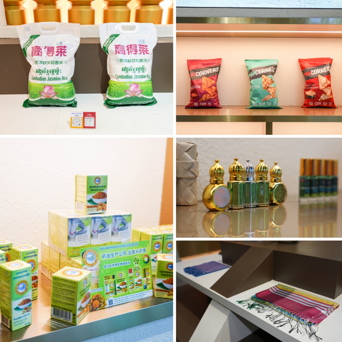 柬埔寨主題館內集中展示了香米、棕糖、啤酒等特色商品。這些甄選自當地的地道風物,以其獨特的風味備受青睞,向到訪嘉賓傳遞著舌尖上的高棉風情。